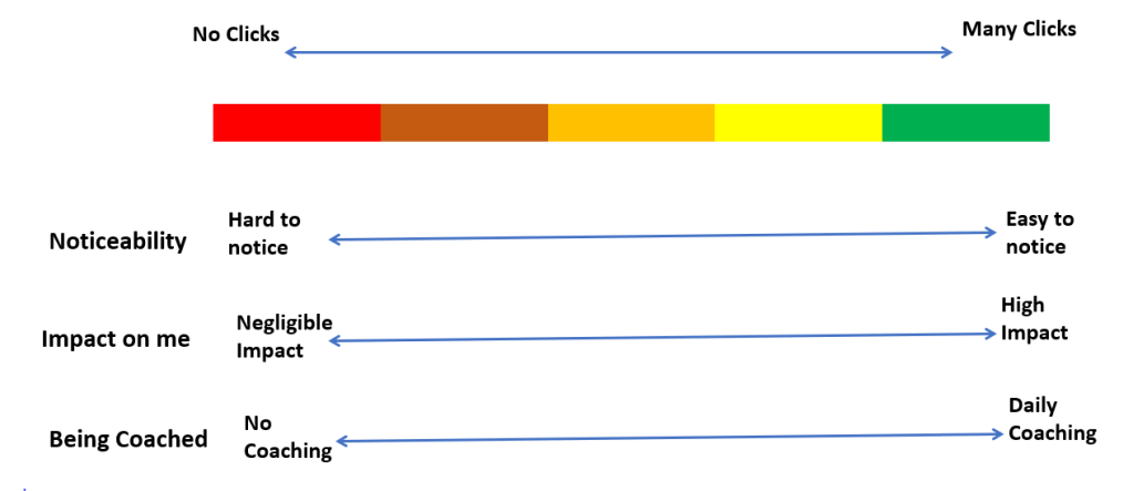 The more the event is noticeable, for example unexpected rain that interrupted my walk, the higher the chances I click the counter. The more the event is impacting me, a car that was about to hit me, I felt that this is unexpected event. Finally, if I was left to my own vices without being coached, my motivation wanes down after few days — that what actually happened. The count of clicks had negative trend, then I started realizing on the fifth day that I am not engaged. Afterwards, I started paying attention again to the events around me. However, without having a coach I cannot sustain using the counter.